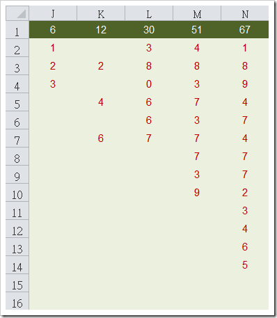 如果要在每一欄的第一列中顯示該欄的所有數字總和,運用R1C1表示法來計算: