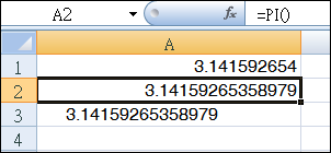 在Excel中如果要顯PI的有效位數,預設只有10個位數(例如儲存格A2),如果想要顯示15位數呢?(Excel中最多的有效位數為15位)