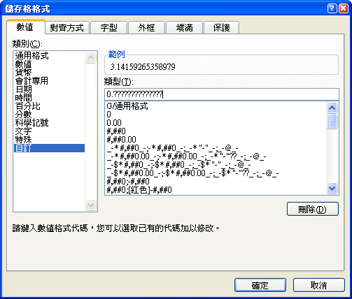 例如,可以設定數值格式為自訂:0.??????????????,結果如儲存格A2。