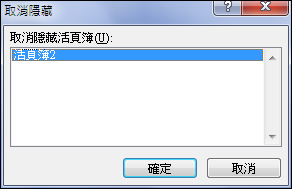 如果要取消隱活頁簿,則在[檢視]功能表中選取[取消隱藏視窗],並在對話框中選取想要顯示的活頁簿。