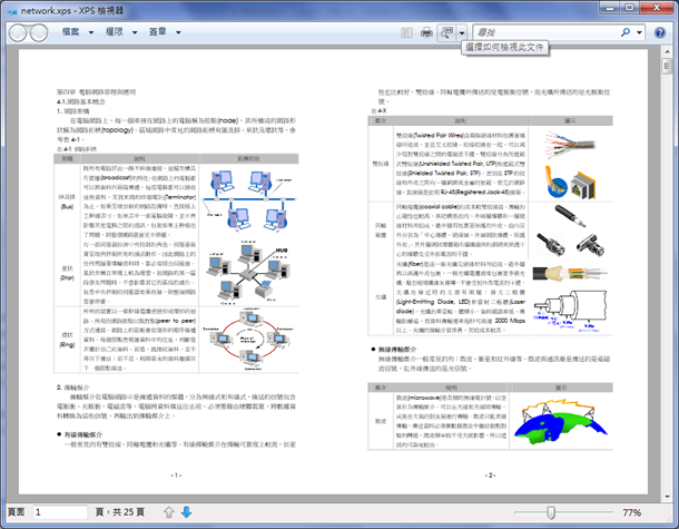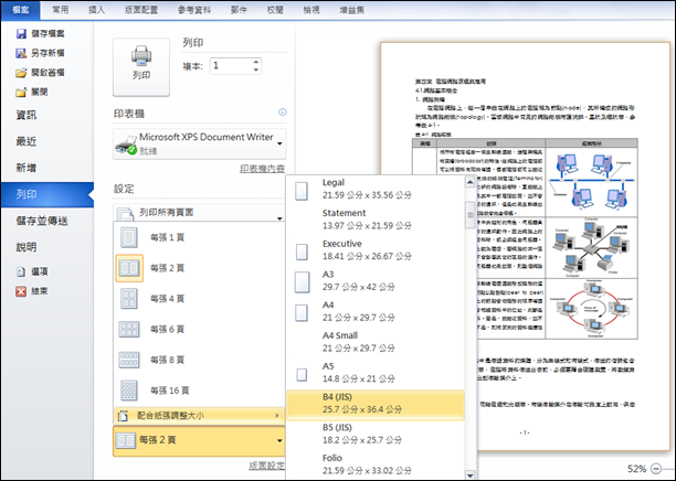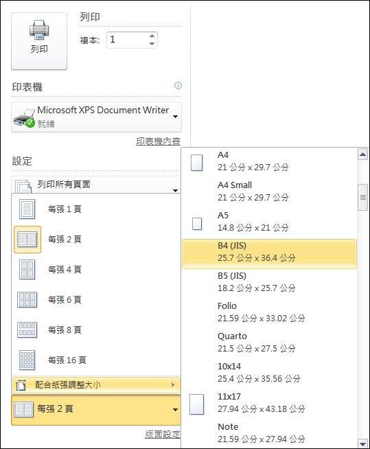 將其列印輸出至 Microsoft XPS Document Writer,利用XPS檢視器來看看列印的結果。
