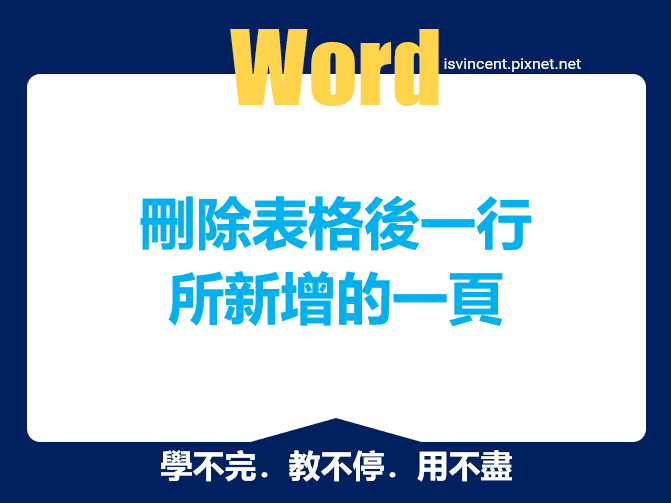 或許大家在用 Word 時有過這樣的經驗:當某一頁的表格正好最後一列位於一頁的最後一行時,會多出一頁,而這一頁並沒有要放任何內容,列印時也會浪費一張紙。