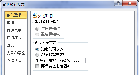 5. 設定[數值表示方式/泡泡的面積]為「200」(預設為100),即放大一倍面積。