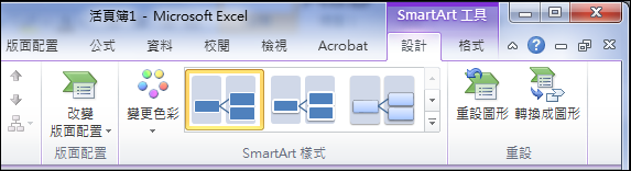如果你是在 Word 中製作 SmartArt 物件,則只能用第2種方式,因為 Word 預設值,沒有提供[轉換成圖形]按鈕。但是你可以將 Wrod 中的 SmartArt 物件,複製到 Excel 中進行第1種方式的調整。