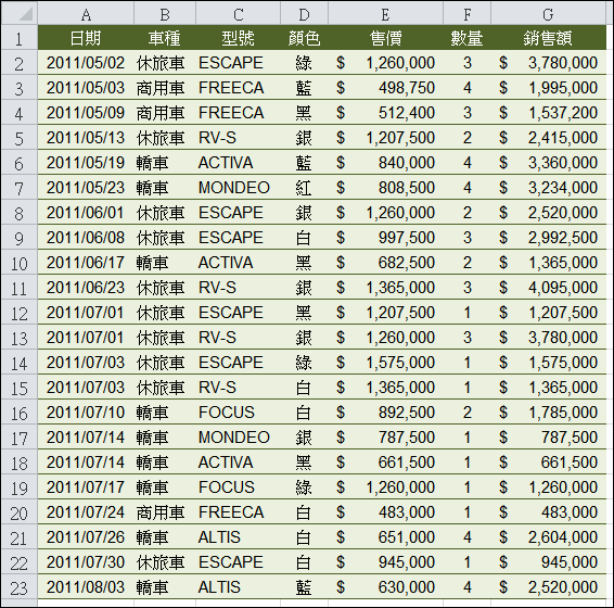 例如:輸入日期條件:「>=2011/7/1」,即篩選2011/7/1之後的資料。
