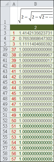 你會發現運算結果愈來愈趨近於「1」,也就是在本例中可得:不須計算至無窮多個,即可得到運算結果。