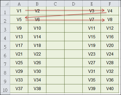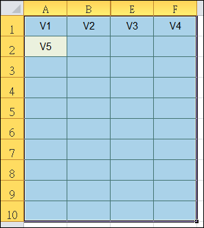 同事問到:在 Excel 中,有一個資料表須依由左而右、由上而下輸入資料,並且在中間會跳過 2 欄,如何才能快速輸入資料呢?(參考下圖)