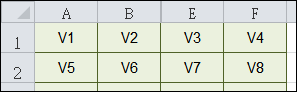 由儲存格A1開始輸入資料,每輸入一筆即按一下 Enter 鍵,其輸入順序自動為 儲存格A1 → 儲存格B1 → 儲存格E1 → 儲存格F1 → 儲存格A2 → 儲存格B2 → …。