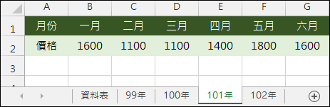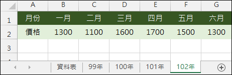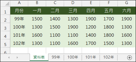 回答網友提問:當資料分處於多個工作表中(例如:99年、100年、101年、102年),如果想要在某一個工作表中查詢各個工作表中的資料,該如何處理。當然各個工作表的格式都是一樣的!(參考以下四個圖)