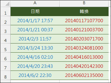 網友問到:請問有沒有辦法將2013/9/10 下午 2:40:00轉換成20130910144000,為了排序避免缺 0 產生問題,所以 9 月變成 09,下午 2:40 變成 1440,秒省略。(參考下圖)