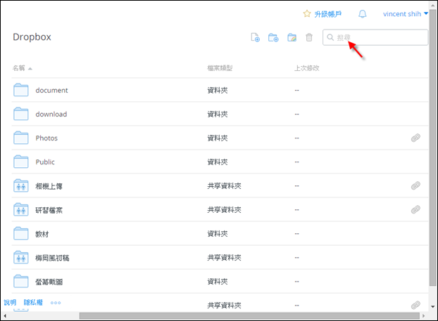 當你在使用 Dropbox 時要找尋某些檔案,除了使用瀏覽的方式之外,使用「搜尋」工具應該是較方便省時省事的。有同事問到,如何使用除了「關鍵字」搜尋之外的進階搜尋呢?