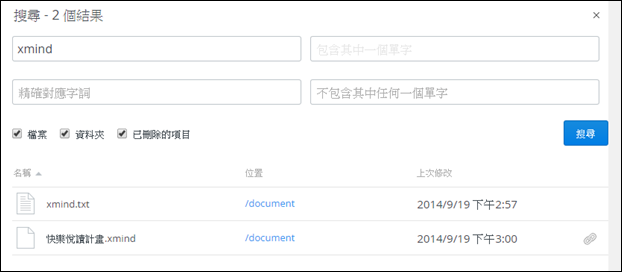例如:下圖中搜尋「xmind」,找到了二個檔案:
