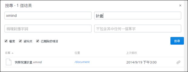 使用「包含其中一個單字」,輸入「計畫」,只找到了一個檔案:
