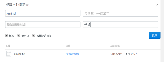 使用「精確對應字詞」,輸入「快樂」,只找到了一個檔案: