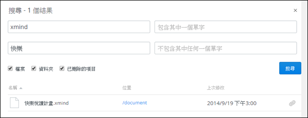 使用「不包含其中任何一個單字」,輸入「悅讀」,只找到了一個檔案: