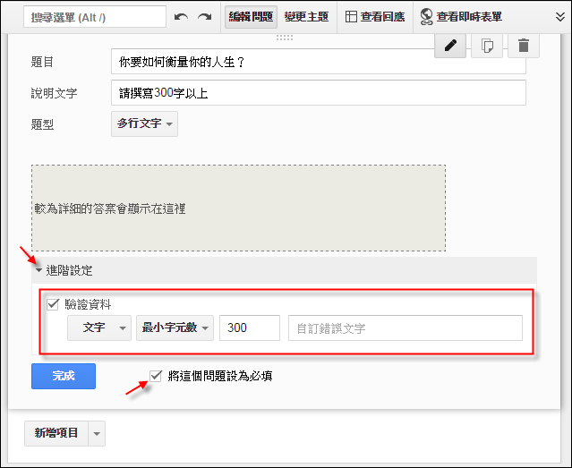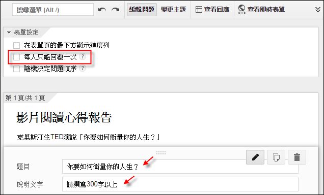 4. 在「題目」和「說明文字」中輸入你的要求。