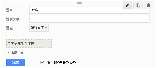 12. 接著新增一個「單行文字」用以輸入學生的姓名,並將問題設為必填。