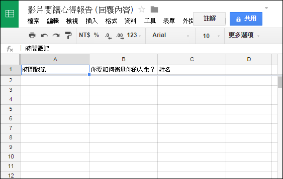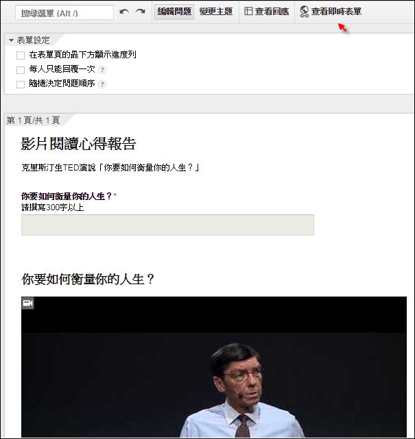 14. 在上圖中按一下「查看即時表單」,這就是要給學生做答的畫面。