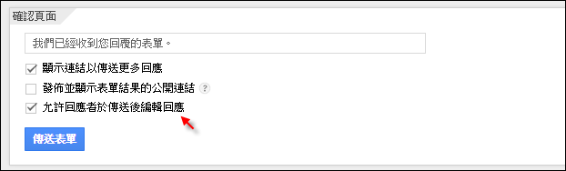 15. 最後,勾選「允許回應者於傳送後編輯回應」,讓學生可以修改報告的內容。