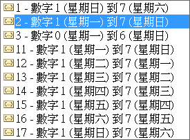 在 WEEKDAY 函數選擇參數2,乃對照星期一到星期日為 1 到 7。