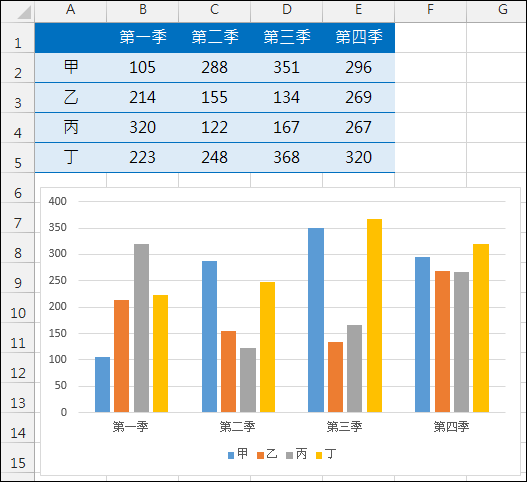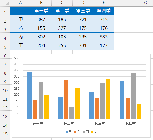 例如,在下圖中有一個取自於資料表製成的直條圖圖表: