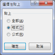 5. 選取「格式」選項,按一下[確定]按鈕。