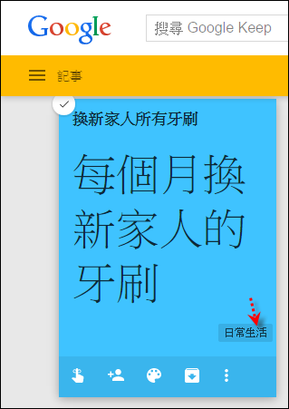 Google Keep 中的提醒功能,之前就包含了二種:指定日期和時間、指定地點。現在這個提醒功能又加入了「週期」的概念。例如:設定每二\個月要更換牙刷一次的提醒。設定週期,符合某些工作或操作是重覆且有規律的出現,使用「週期」設定即可省掉重覆設定的困擾。在設定時,預設值為:不重覆。