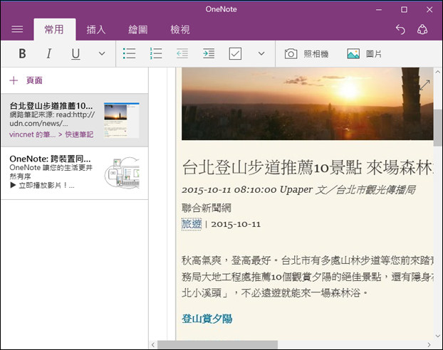 開啟你的 OneNote 之後,即可看到搜集到的網頁筆記,其中也包含你先前所做的註記和所畫的筆跡。