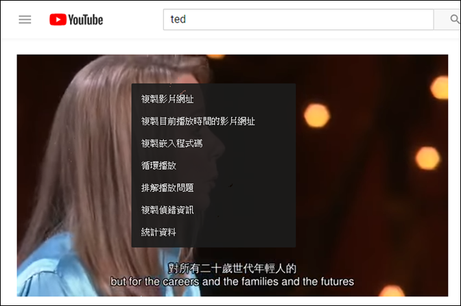 在影片有一下右鍵,會顯示如下的選單: