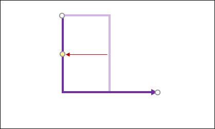 接著,將中間的黃色控制點移至左邊,即可做成90度轉彎的線條。