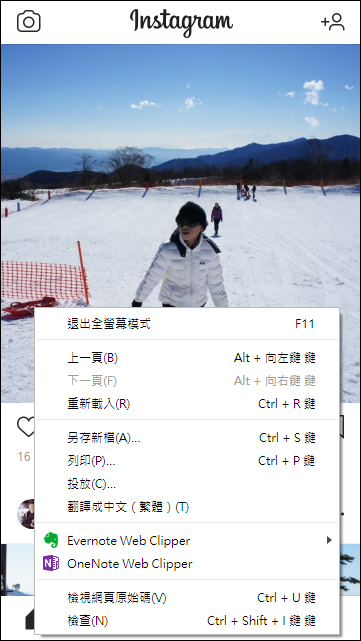在 Instagram 中的圖片上按右鍵,的確沒有儲存圖片的選項,如何才能儲存圖片?
