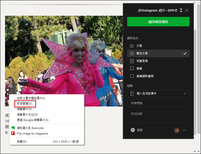 我自己的是這樣做!在 Google Chrome 瀏覽器中藉助 Evernote 的 Evernote Web Clipper 擴充功能。