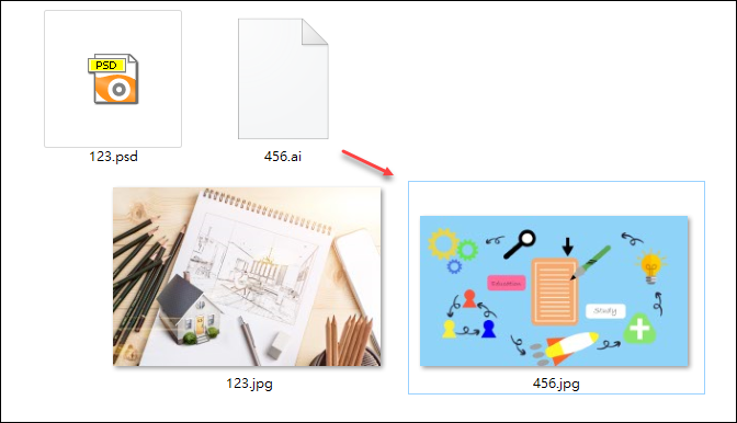 其中一個副檔名是「psd」,這是 Adobe Photoshop 檔案格式,另一個副檔名是「ai」,這是 Adobe Illustrator 的檔案格式。我的電腦並沒有安裝這兩個應用程式,該如何取出圖片並儲存為 JPG 檔呢?