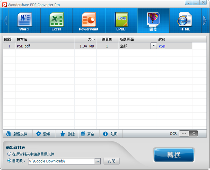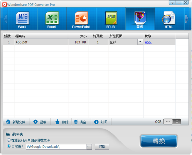 2. 再以轉檔程式 Wondershare PDF converter Pro 將其轉換為 JPG 圖檔。