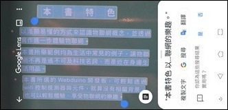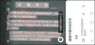 如果想要取得書本中的一段文字,可以使用相機內建的 Google Lens 功能或是下載 Google 智慧鏡頭來操作。