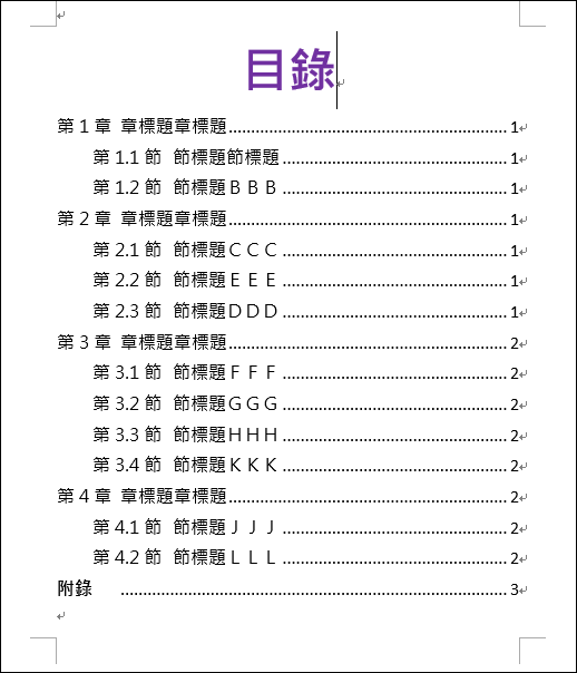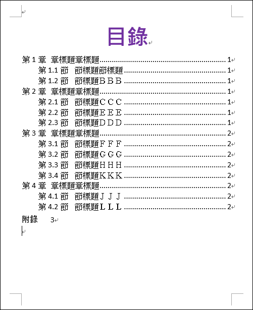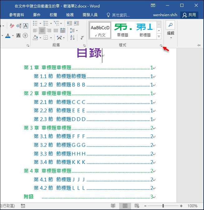 本篇要來建立文件中章節標題的多層次清單,並產生目錄。(參考下圖)