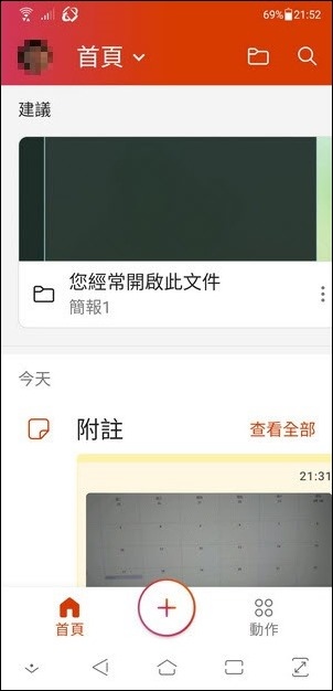 如果在 Office App 要新增附註,可以首頁上點選「+」,再選取「附註」。