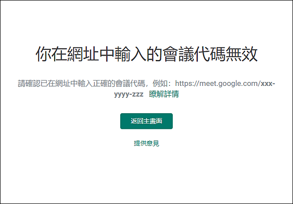 注意喔!使用 Google Meet 產生會議時,可能會發生會議網址無效的錯誤訊息。