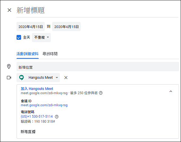 或是到 Google 日曆的活動中產生會議。