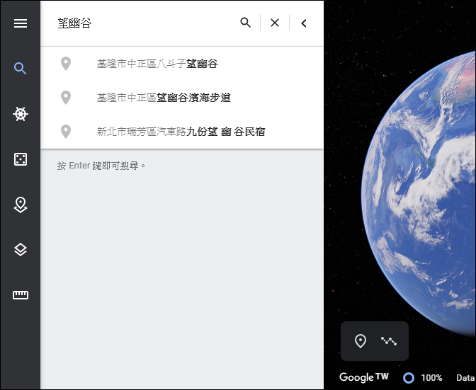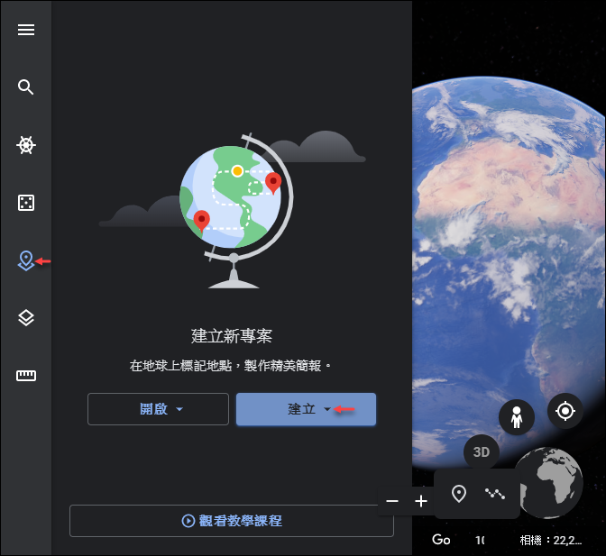 在 Google Chrome 瀏覽器中進入 https://earth.google.com/web/
