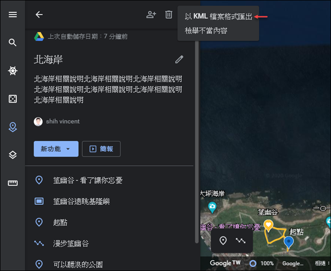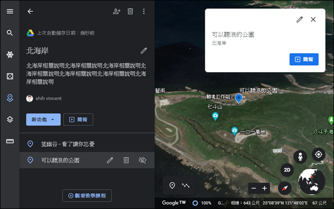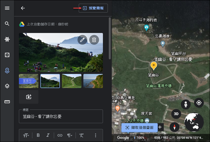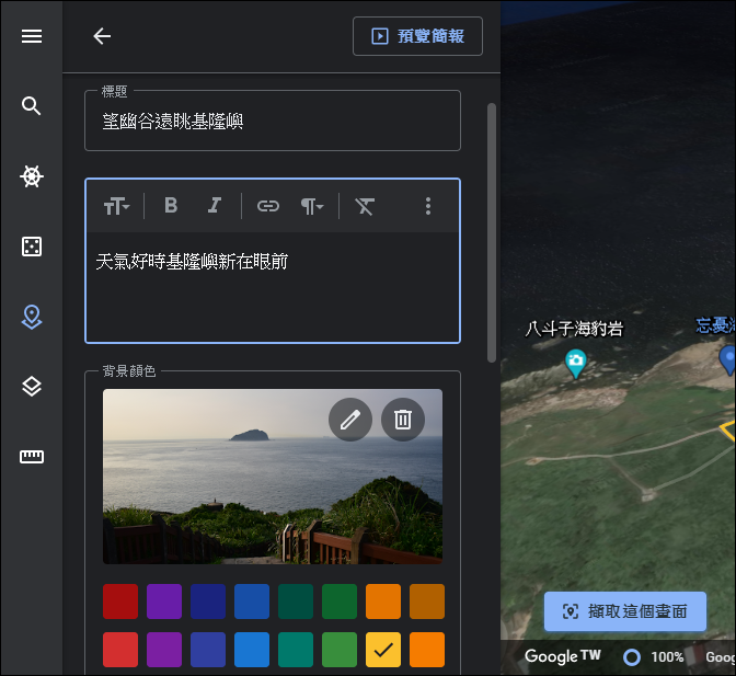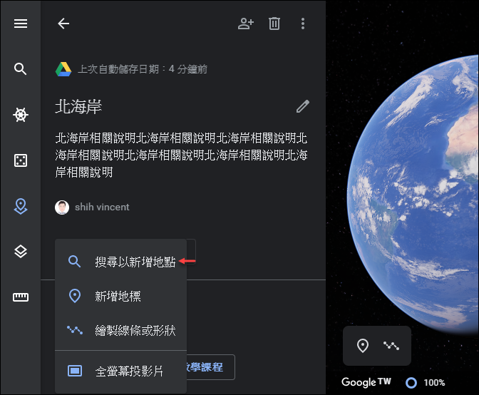 若要重新編輯該簡報,也可以直接在 Google 地球中開啟。