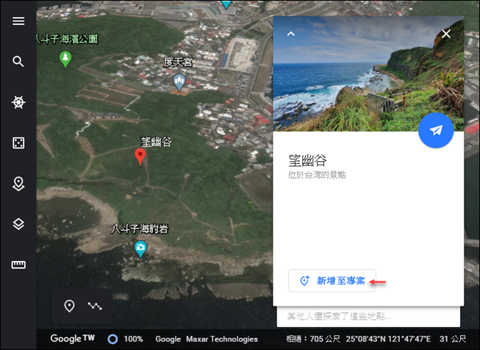 點選上圖中的「新功能」,再選取:搜尋以新增地點。