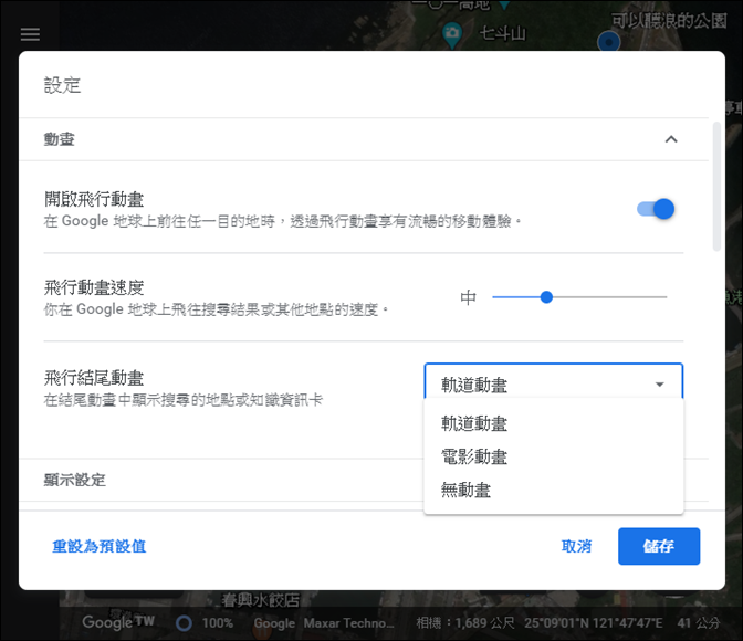 在選單中的「設定」,還可做開啟動畫、動畫速度、飛行結尾動畫等設定。