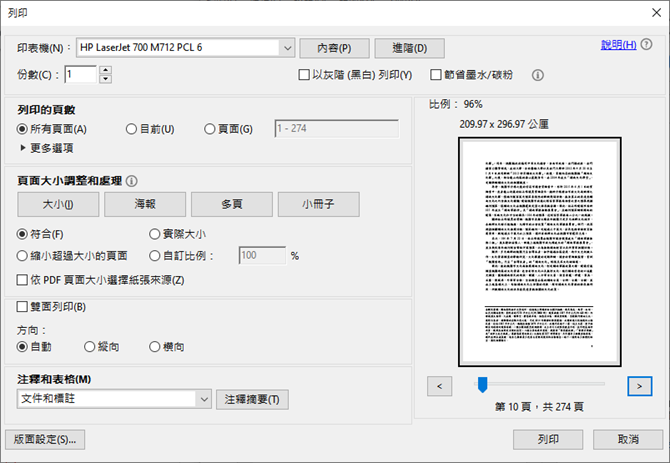 5. 開啟此下載的檔案,會直接進入列印的狀態。下圖是以 Acrobat Reader 開啟檔案。