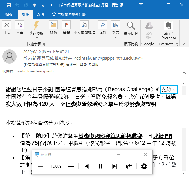 如果你想讓電腦幫你朗讀文字文件或網頁的文字,可以藉助「放大鏡」!