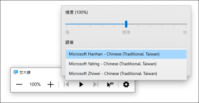 透過設定,你可以修改朗讀的速度和選取不同人的聲音(目前只有三個可選)。