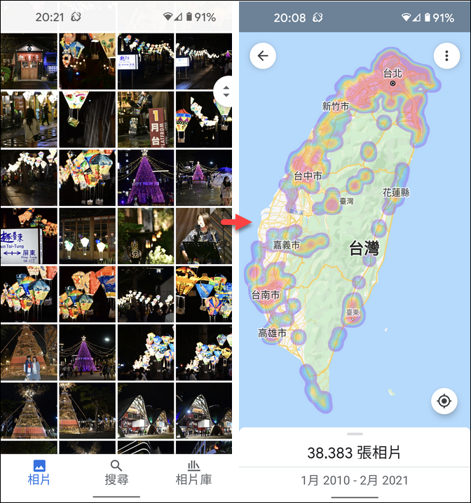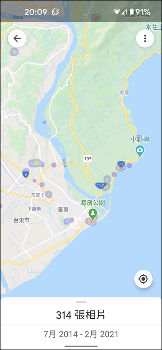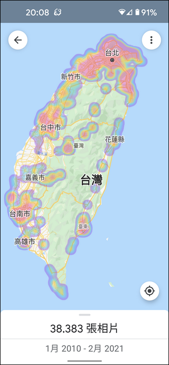 接著就可以看到根據你的所有相片裡的 GPS 資料,標示出相片分佈的熱感圖。