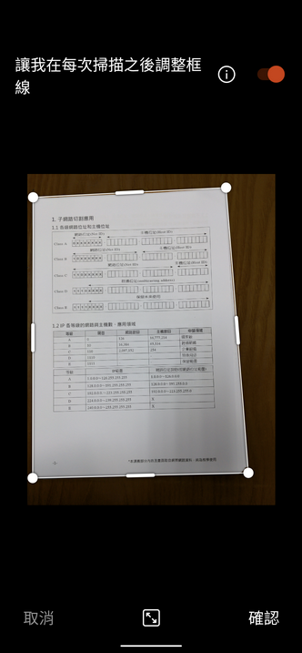 4. Microsoft Office App 會自動找到紙張邊緣,點選:確認。