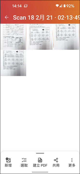 7. 檢視拍好的文件相片,再點選:建立PDF。