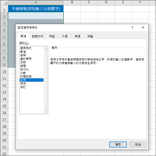 但是,請注意!因為儲存格的格式已改為文字,所以,如果輸入的手機號碼含有非數字的文字也會被接受。